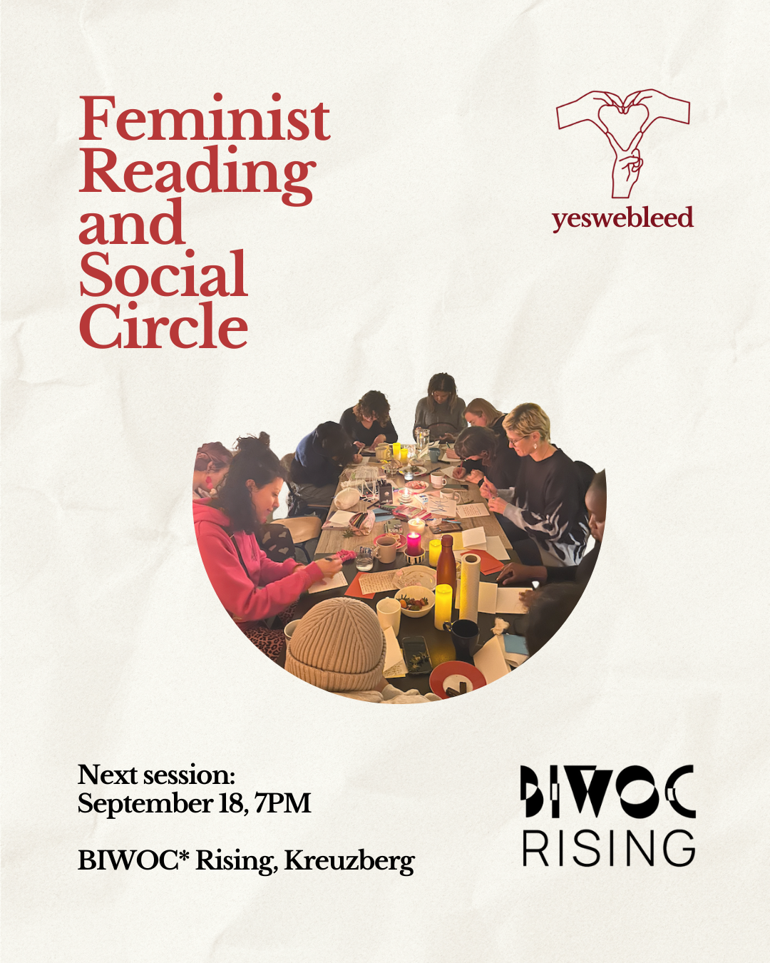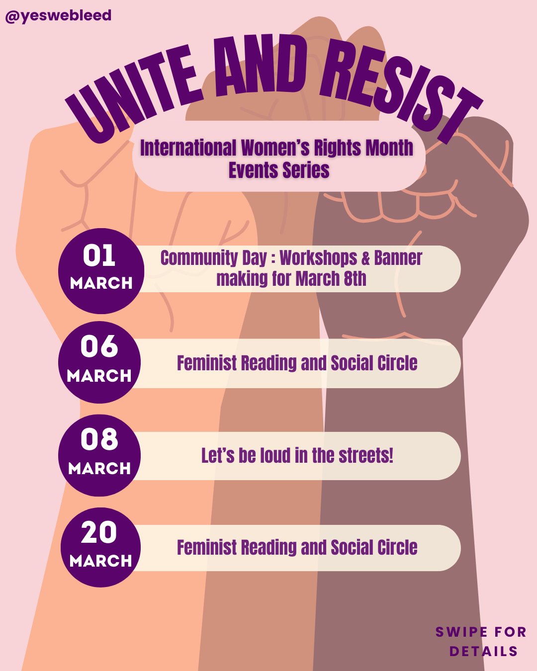 At the core of YesWeBleed is the belief that the menstrual cycle is not just a personal experience, it is a collective one. We hold that healing is a collective process, and that menstrual justice is something we build together, through active, caring, and courageous communities.
